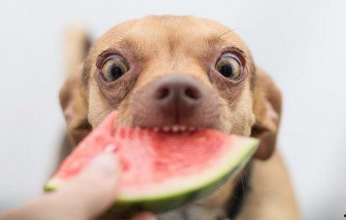 1. 狗狗“抢食”:当主人把西瓜切成小块时,狗狗会迫不及待地抢食,那模样,简直像个小孩子。