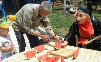 另一位穿着休闲装的男士,他则选择了一个大西瓜。他一边吃着,一边赞叹:“这瓜真甜,夏天吃这个,真是解渴又解暑。”